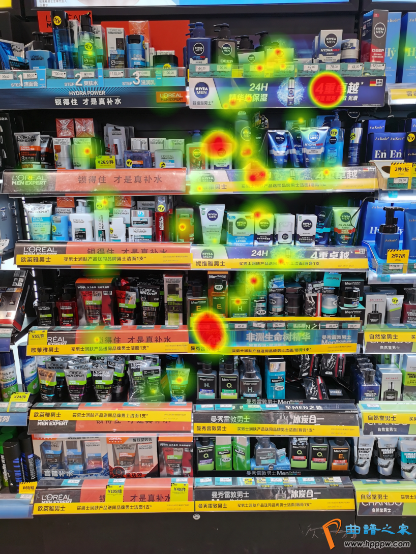 经过实验数据分析,我们能够很轻松的从关注度占比、注视热图、注视次序等结果上看出,当产品本身失去有效的外部宣传包装,没有占据消费者的视线主要位置,会很大程度上削弱消费者对该品牌的关注度,并选择其他具备吸引元素的产品,也有产品包装虽然符合大众审美,但是摆放的位置并不能有效吸引消费者,促使消费者选择其他产品。