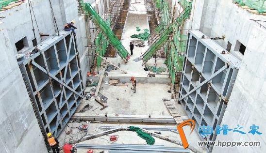 水泥钢筋构成的坚固闸室上下游方向,四对钢铁闸门已经安装到位。每一对闸门又分为两扇。相关负责人介绍,每扇门在出厂时都是两截,施工方现场完成焊接后再进行吊装作业。“吊装闸门就位只是安装工作的起点,真正的难点在调试。”