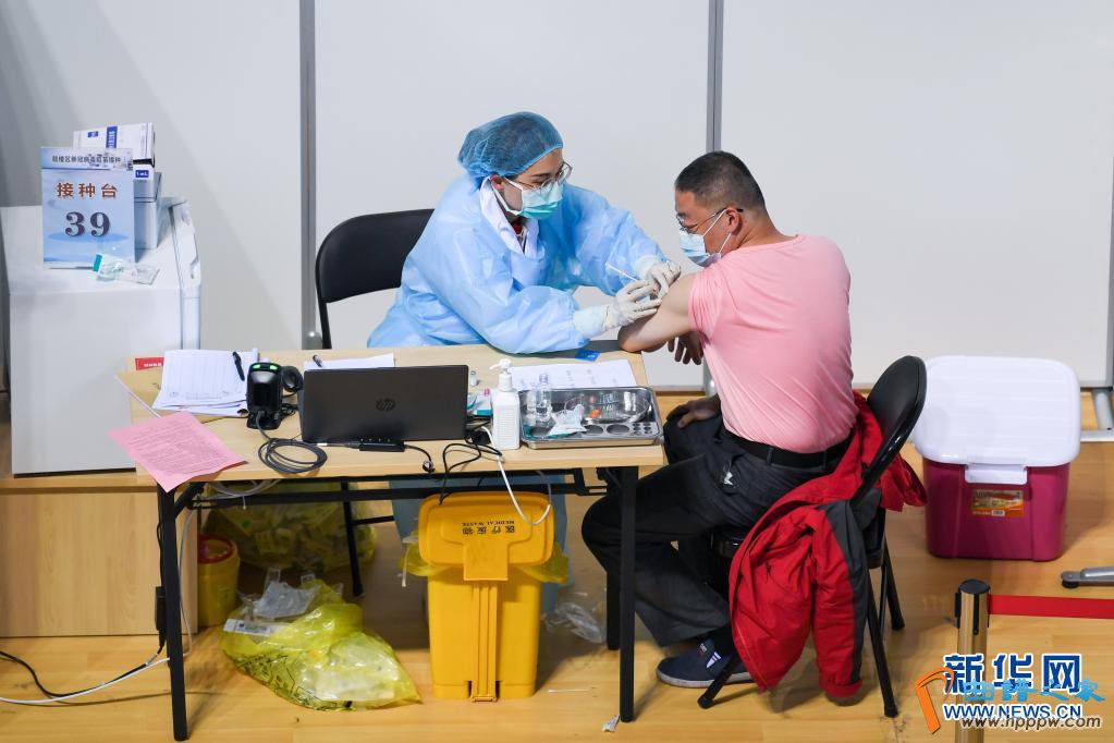 4月9日,市民在南京市鼓楼区五台山体育中心设置的新冠病毒疫苗集中接种点接种疫苗。近日,江苏省南京市在鼓楼区五台山体育中心设置新冠病毒疫苗集中接种点。这是目前南京市最大规模的集中接种点,单日接种量可达10000剂次。新华社记者 李博 摄