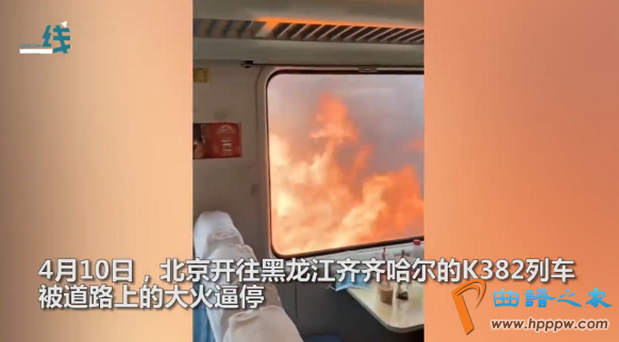 齐齐哈尔一列车被窗外大火逼停 两侧熊熊大火旅客被滞留~