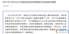 据江西发布最新消息,2021年3月20日,我省九江市新增1例境外输入确诊病例吴某,其在津巴布韦工作,3月1日由江苏南京入境集中隔离了14天,3月15日解除集中隔离后乘火车返回九江市,16日清晨抵达九江火车站后我省立即用负压救护车闭环转运至集中隔离点,并进行...