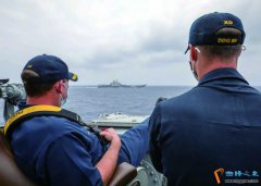 中国海军辽宁舰航母编队的动向近日引发外界的密切关注。西方媒体11日流传的一张照片显示,美国驱逐舰马斯廷号在菲律宾海对辽宁舰进行了近距离的跟踪监视,就连航母上的舰载机都清晰可见。美舰此举是否属于危险接近?美国海军此时发布这张照片,又意欲何为呢...